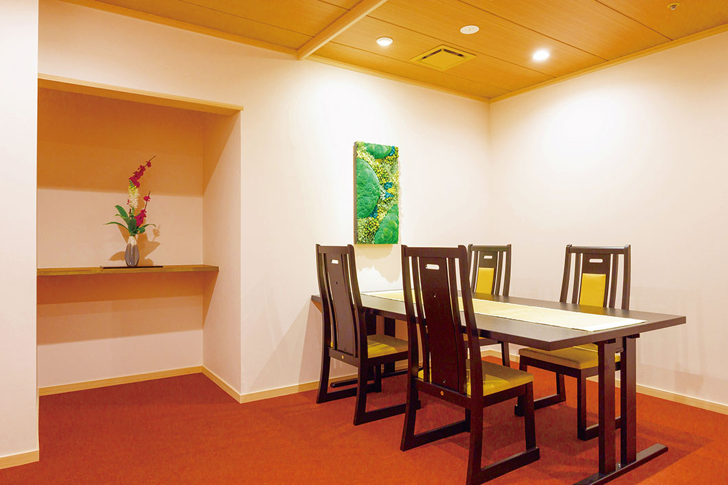 There are three suite Japanese-Western rooms of approximately 90 m², one executive Japanese-Western room of approximately 70 m², and one deluxe twin room of approximately 45 m². All rooms have in-room dining, and are equipped with large smart TVs and the latest smart tables, making them the perfect spaces for seclusion.