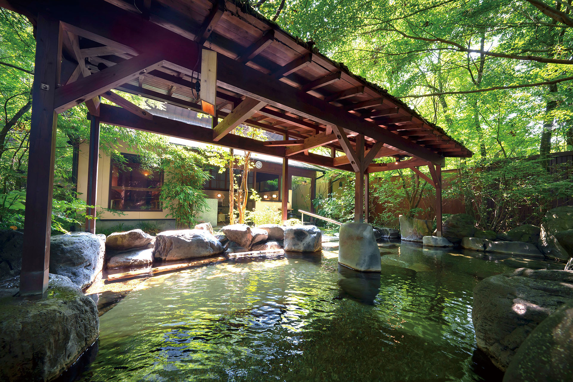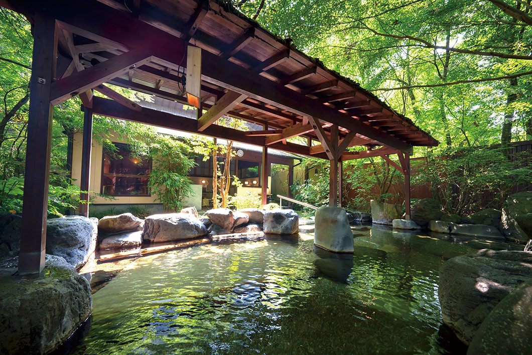 The inn has 11 hot springs on its premises. There are 41 baths for men and women in total in the four hot spring facilities inside and outside the building. The spring water is alkaline with a pH of over 8.5, which is good for the skin, and contains 138 mg of metasilicic acid, a natural moisturizing ingredient, making it a popular beauty bath and fatigue recovery bath.