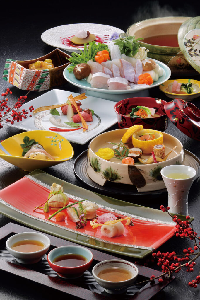 Dining options include the traditional Japanese restaurant "Yamashina" facing the main building's courtyard, the Japanese dining room "Wakana" with an open kitchen and sunken kotatsu and table seating, the adult restaurant "L'Amusant" for enjoying conversation, food and drinks, and the spacious restaurant "Fantasy." Guests can enjoy a relaxing atmosphere. For private meals, there are "private room dining plans" and "semi-private room dining plans" available, allowing you to enjoy gourmet food without worrying about those around you.
