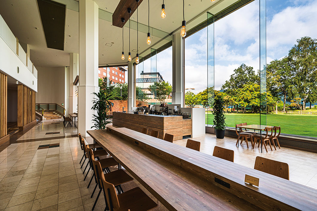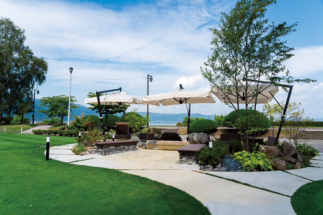 The library and cafe "BLOSSOM COFFEE" and the foot bath "Chamasyu" facing the lakeside will add color to your stay, making your trip a memorable one.