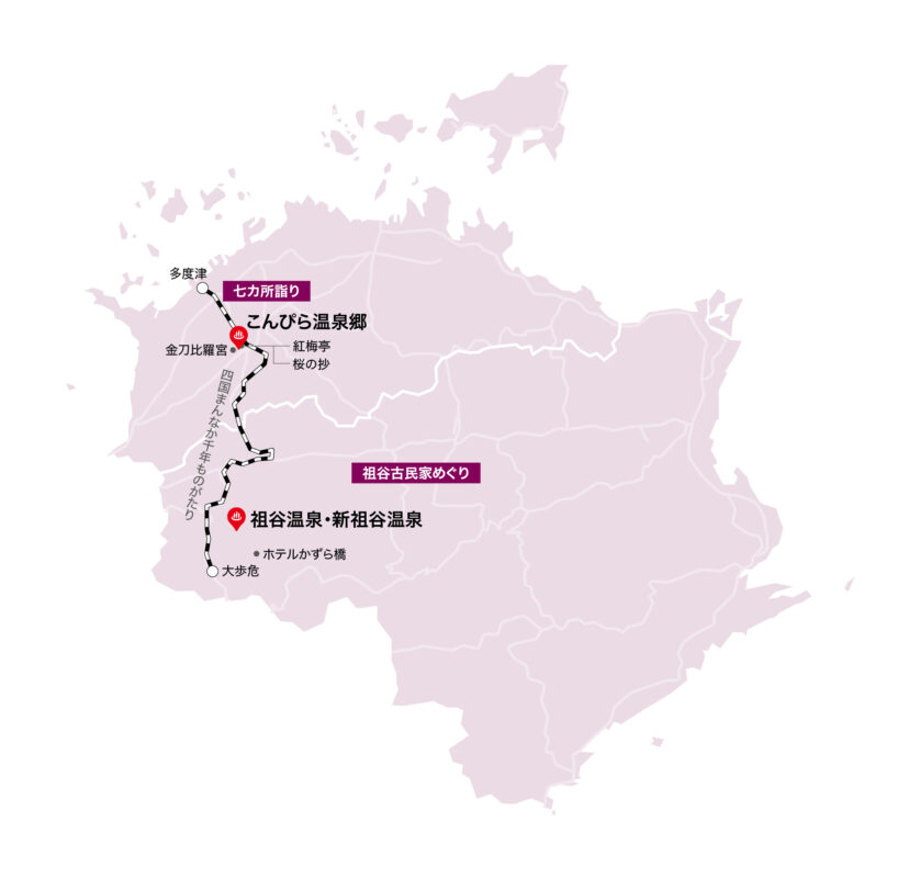 - Take the limited express tourist train "Shikoku Mannaka Sennen Monogatari" to Konpira and Iya