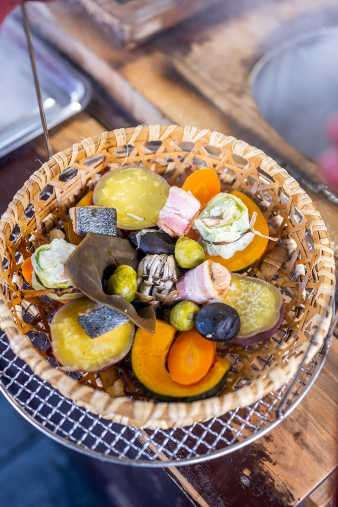 In the hot spring town, you should also try steaming at a "steaming facility" that uses hot spring steam from the source at a temperature of 98 degrees. Half of the steaming facilities are open to tourists free of charge. To get ingredients, head to the "Hosaku Market" along the national highway. Fresh vegetables, a wide variety of shiitake mushrooms, and simple tofu are also popular. At the "steaming facilities" scattered around town, locals enjoy cooking, so you can ask them to teach you how to steam. You can choose whatever you like, from steamed eggs and boiled sweet potatoes to steamed rice and vegetables. There is also a "Hell Steaming Vending Machine" in the hot spring town. Don't forget to try the local specialty, "Tsutetate Pudding."