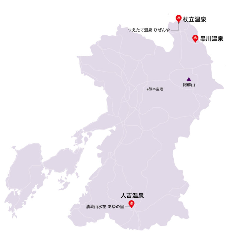 If you follow the national highway along the Tanohara River, a tributary of the Chikushi River, you will suddenly come across a hot spring town lined with around 30 hot spring inns. A distinctive feature is the "Kurokawa Onsen Ichiryokan" concept, which treats the entire hot spring area as "one hot spring inn." The scattered inns are treated as "detached rooms," and the narrow paths connecting the inns are likened to "corridors." The concept is to allow visitors to enjoy the natural scenery of the hot spring town and the open-air baths of each inn while walking back and forth between the detached rooms on these corridors, and the "bath pass," which can be purchased at inns or the inn association, is your passport. There are eight types of spring water: weakly acidic simple springs, weakly alkaline simple springs, sulfur springs, bicarbonate springs, chloride springs, sulfate springs, iron-containing springs, and acidic springs. It's fun to explore the different types of spring water and experience the differences.
