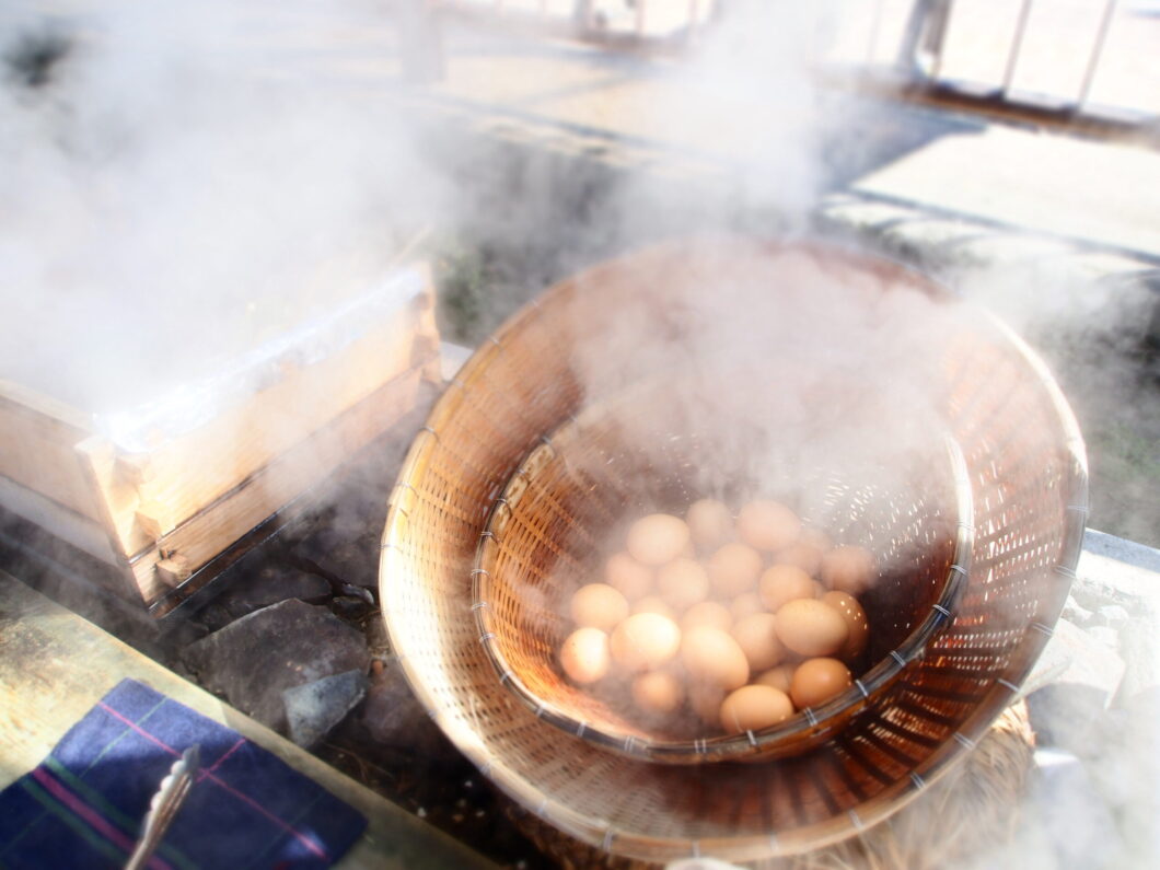At the "Steamed Food Shop," you can take out eggs, vegetables, hot spring buns, and more that have been steamed in the hot spring steam. The hot spring eggs, which are slowly steamed for an hour, have an exceptional taste.