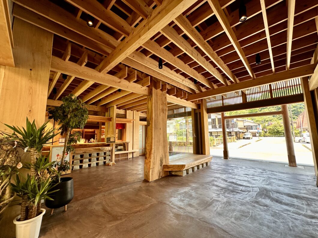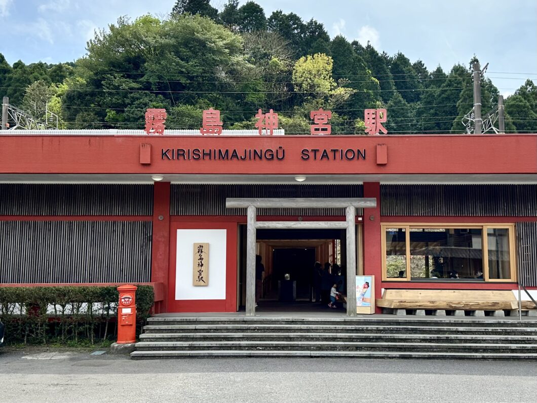 JR Kirishima-Jingu Station, which reopened in March 2024, is one of the stations closest to Kirishima Onsenkyo. The station building features a warm interior, made with plenty of cedar from Kagoshima Prefecture. The ticket gate is decorated with a torii gate, welcoming visitors to Kirishima Shrine.